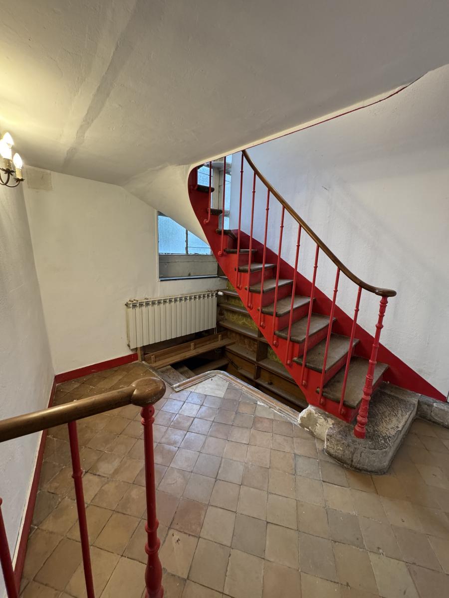 Idéalement située en plein centre ville, avec une jolie cour d'environ 30m² et une terrasse vue sur un jardin arboré.