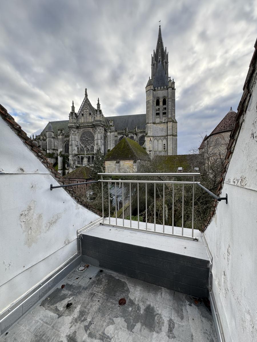 Une terrasse au troisième niveau avec vue sur la cathédrale.